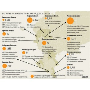 К сожалению, подобным образом обстоятельства сложились не только на Ярославской земле. Как минимум 13 регионам России грозит прекращение или ограничение поставок «Газпромом» газа предприятиям ЖКХ. В шести регионах ограничения уже начали действовать: из-за этого на прошлой неделе без горячей воды остались потребители в Махачкале и Владикавказе, Брянске, нескольких населенных пунктах в Краснодарском крае и Ингушетии, а также подмосковном Сергиевом Посаде. Подобные меры в перспективе могут коснуться Московской, Тверской, Волгоградской, Владимирской, Смоленской и Астраханской областей, а также Кабардино-Балкарии, поскольку эти регионы попали в список самых крупных и проблемных должников «Газпром межрегионгаза».